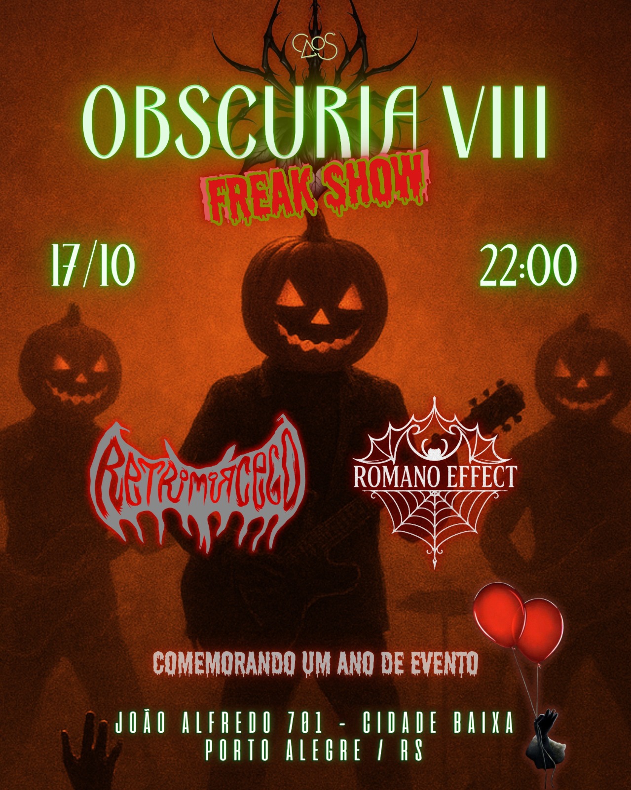 Em Porto Alegre, Retromorcego se apresentará no Caos bar, como parte das atrações da festa gótica Obscuria.